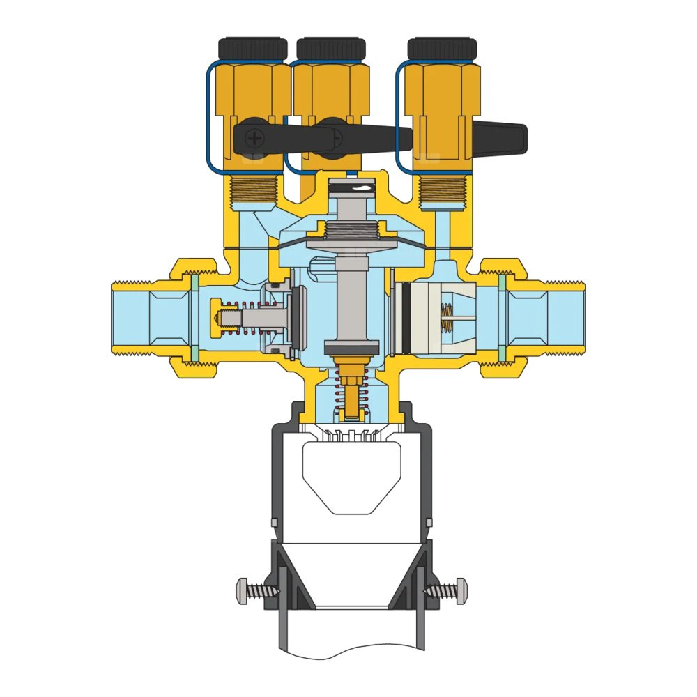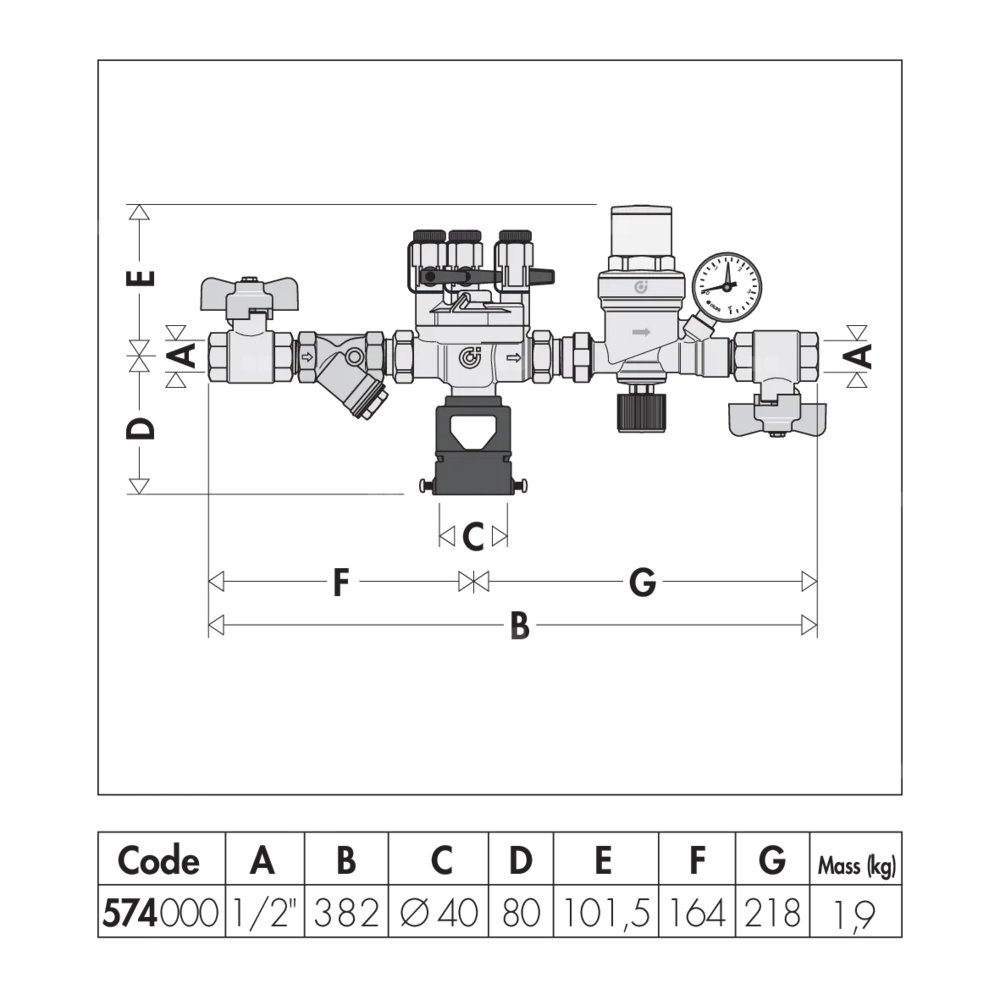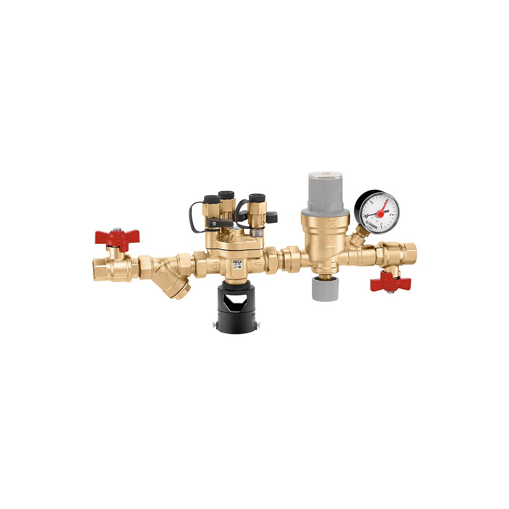 Automatyczny zestaw do napełniania instalacji z izolatorem przepływów zwrotnych typu BA, filtrem skośnym i zaworami odcinającymi Izolator przepływów zwrotnych certyfikowany zgodnie z normą EN 12729 Przyłącze: G 1/2" (ISO 228-1) GW. Maksymalne ciśnienie pracy: 10 bar. Zakres temperatury medium: 5–65 °C. Zakres regulowanego ciśnienia: 0,2–4 bar.