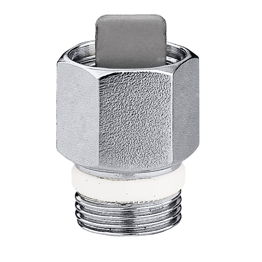 Automatyczny zawór odcinający. Chromowany. Do automatycznych zaworów odpowietrzających serii 5020 i 5022. Gwint z uszczelką PTFE. Przyłącze: G 1/2" (ISO 228-1) GW, wlot. Przyłącze: G 1/2" A (ISO 228-1) GZ, wylot. Maksymalne ciśnienie pracy: 10 bar. Zakres temperatury medium: 0–110 °C. Wykończenie: chromowane. Materiał: mosiądz.