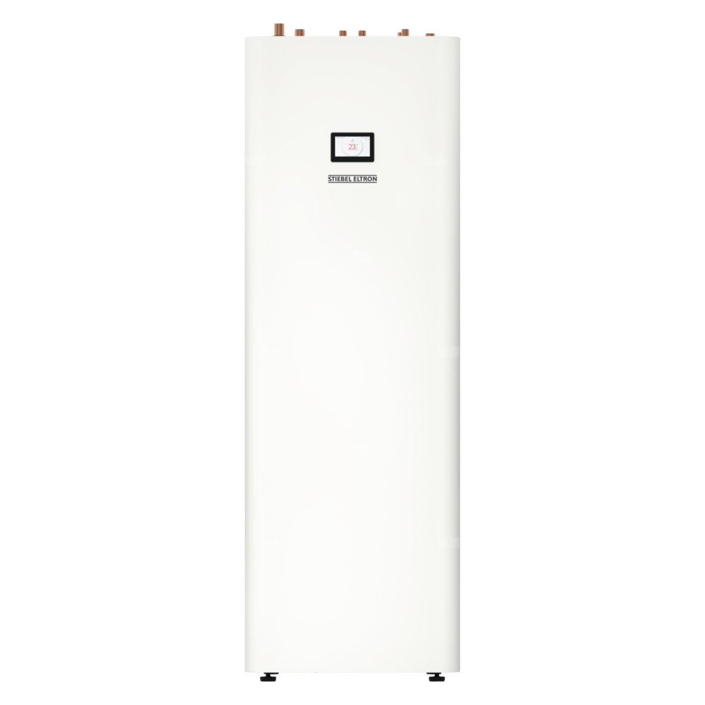 Inwerterowa pompa ciepła S/W z wbudowanym zasobnikiem c.w.u. o poj. 184litrów, wbudowanym regulatorem, zaworem 3-d oraz pompami obiegowymi dolnego i górnego źródła. Modulacja mocy 2.7-11.67kW. Maks. temp. zasilania +70°C. Klasa efektywności A+++/A+++. Możliwość kaskadowania do 6 szt. Czynnik chłodniczy R290