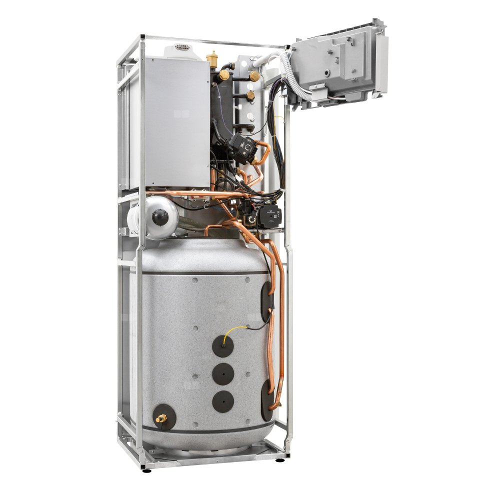 Ponadto umieszczenie głównych elementów instalacji wewnątrz obudowy kotła pozwala na jeszcze większą oszczędność miejsca w pomieszczeniu i zapewnia estetyczny wygląd