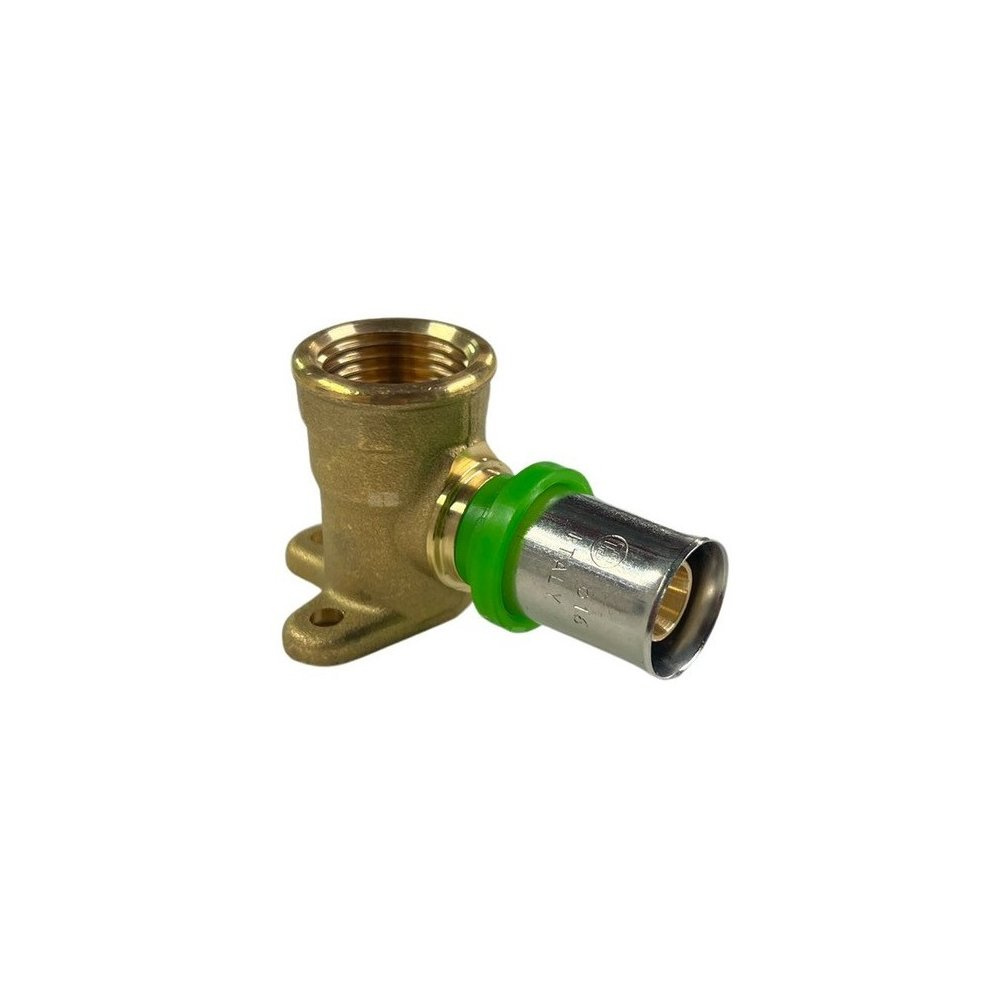 Kolano naścienne zaprasowywane QIK II, mosiądz, 1/2'' x 16 mm (GW x złącze zaprasowywane), 38 mm