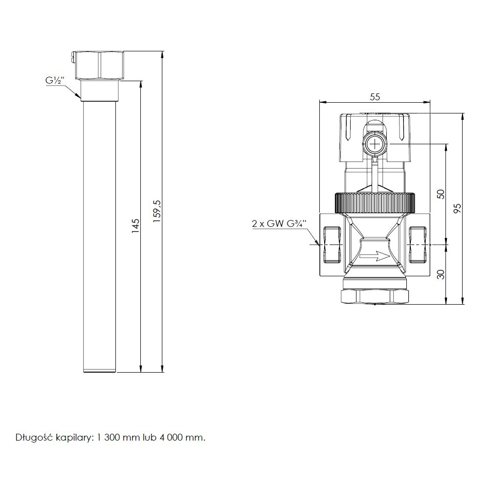 Zawór samoczynnie się otwiera w momencie przekroczenia temperatury otwarcia w miejscu montażu czujnika.