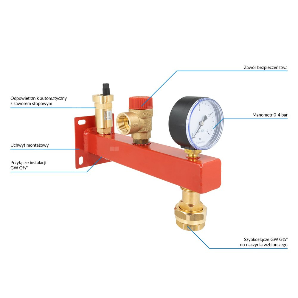 Służy do zamontowania naczynia przeponowego o pojemności do 25 l.