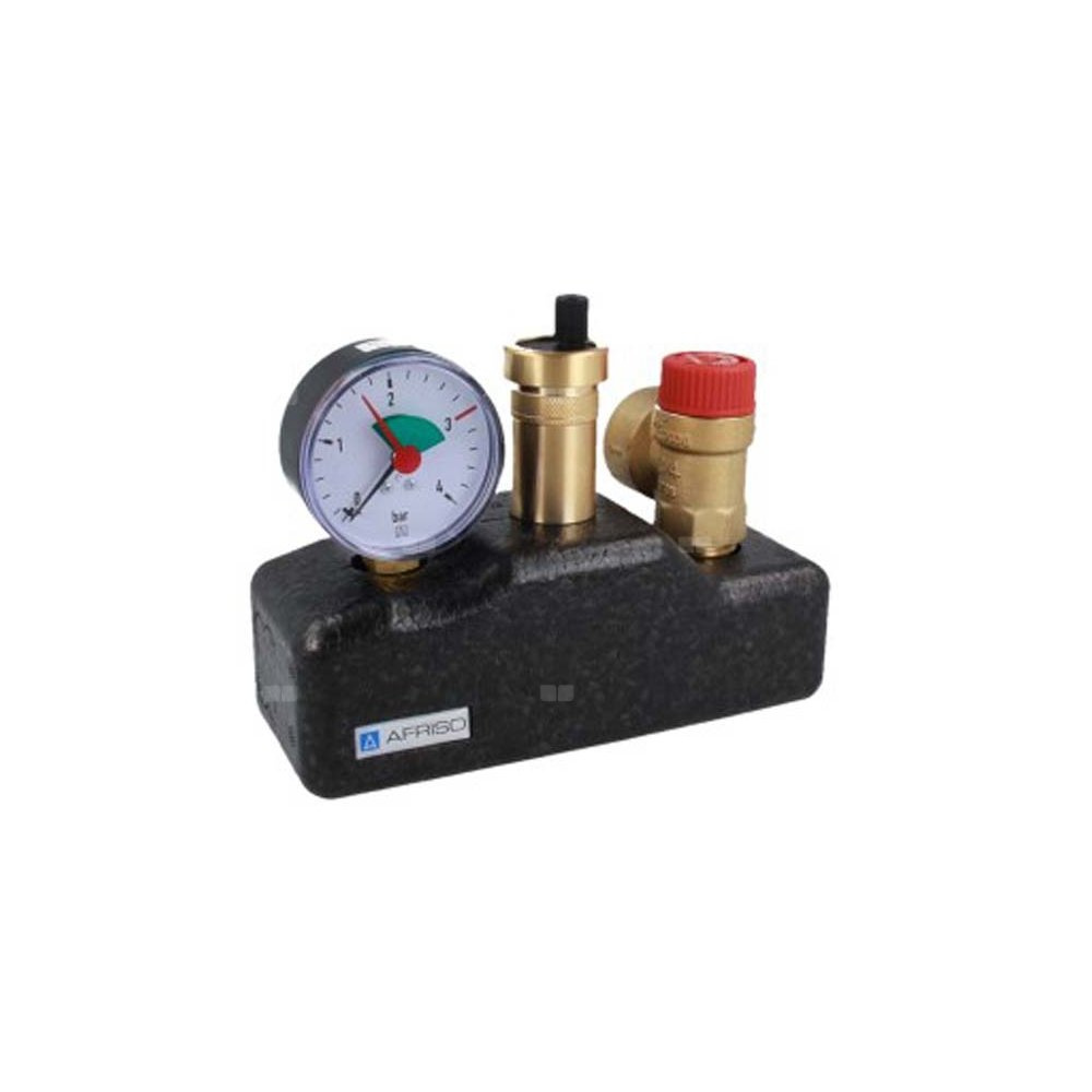 Manometr i odpowietrznik wyposażone w zawory montażowe.