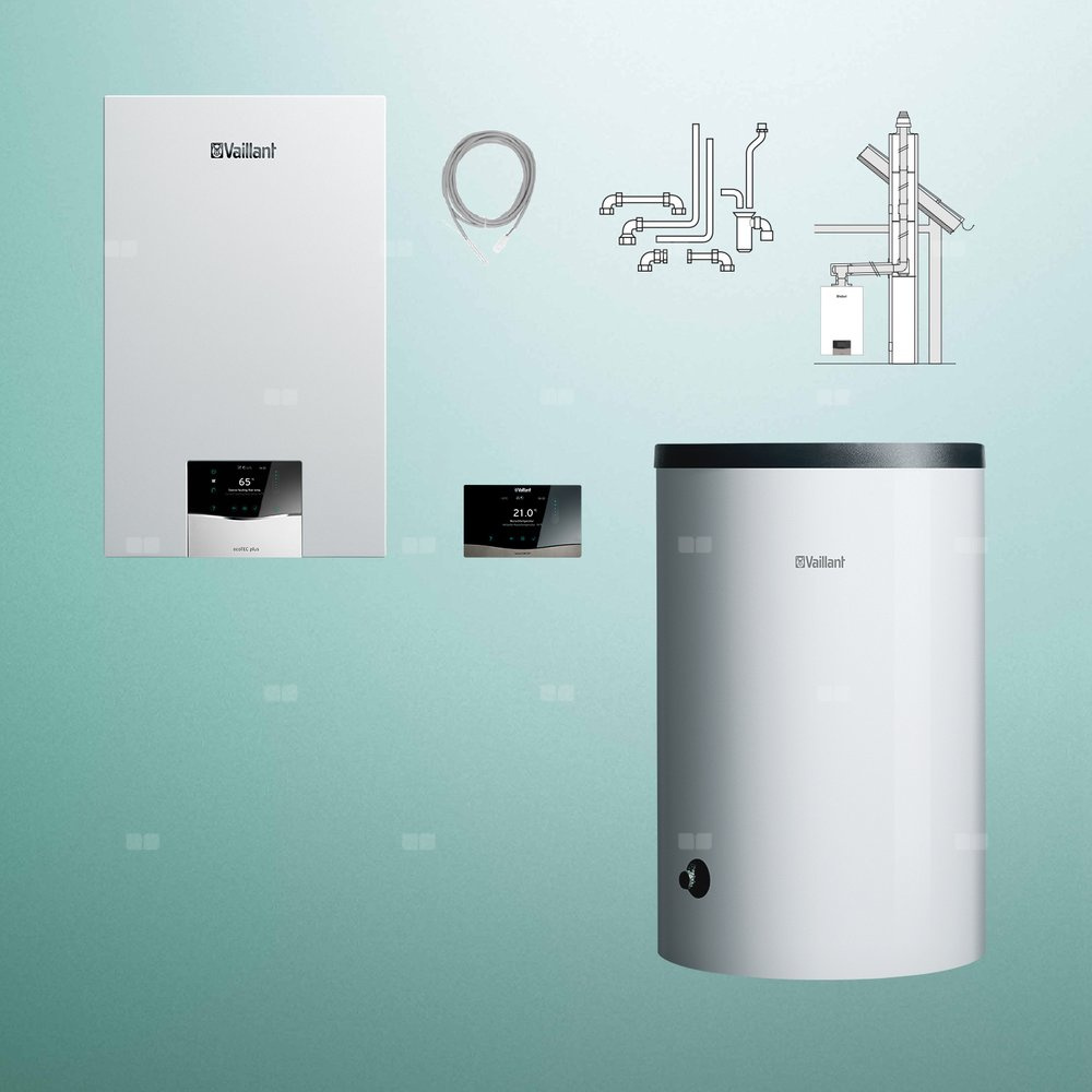 Pakiet - Kocioł gazowy jednofunkcyjny VAILLANT ecoTEC plus VC 15CS/1-5 kondensacyjny wiszący 2.8 - 16.4 kW + RegulatorsensoCOMFORT 720 + Zestaw powietrzno-spalinowy szachtowy + Zasobnik c.w.uVIH R 200/6 B