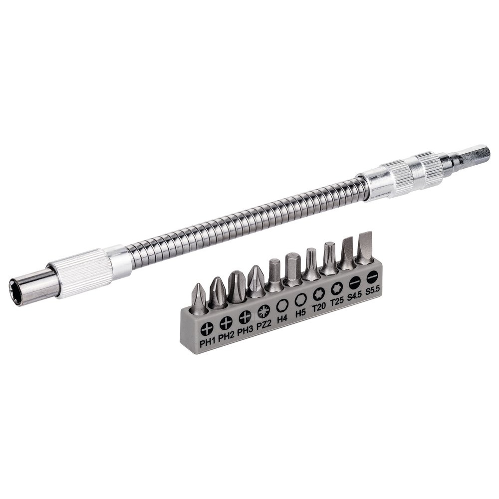 Metalowa, elastyczna przedłużka SDB, 11 szt. Plastikowa, elastyczna przedłużka, 200 mm, zestaw końcówek wkręcających PH1, PH2, P