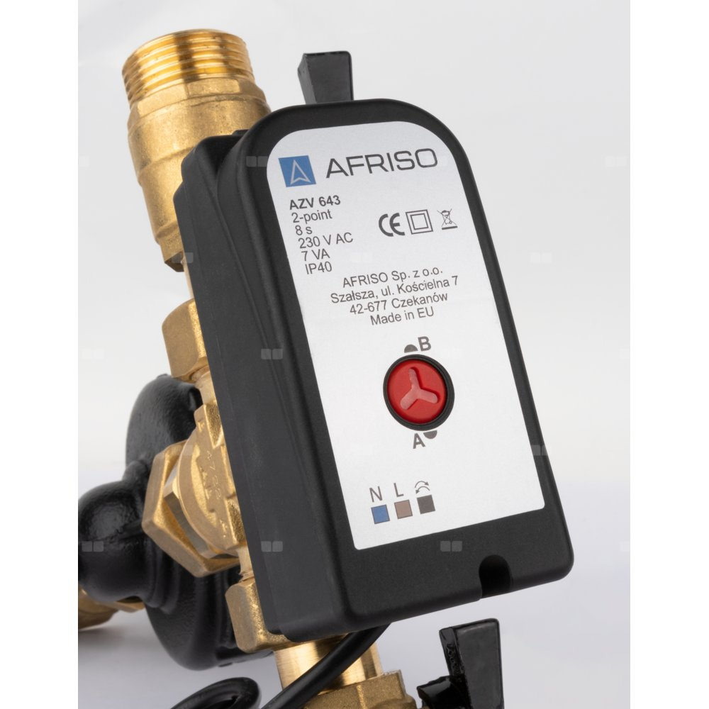 Pompuje czynnik grzewczy oraz przełącza przepływ pomiędzy dwoma częściami instalacji po otrzymaniu odpowiedniego sygnału sterującego.