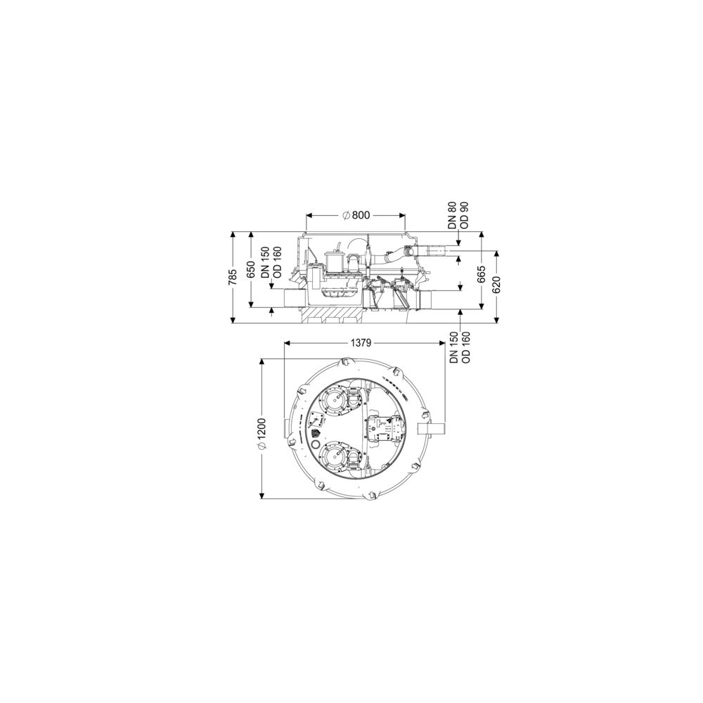 KESSEL Przepompownia przeciw. Ecolift XL, ścieków Ścieki bez fekaliów, zabudowa w ziemi, urządzenie dwupompowe, z 2 SPF 1400 pomp zatapialnych, typ pracy S1, czujnik alarmu z Sonda optyczna, sterownik Comfort Plus, Wariant z najniższą zabudową