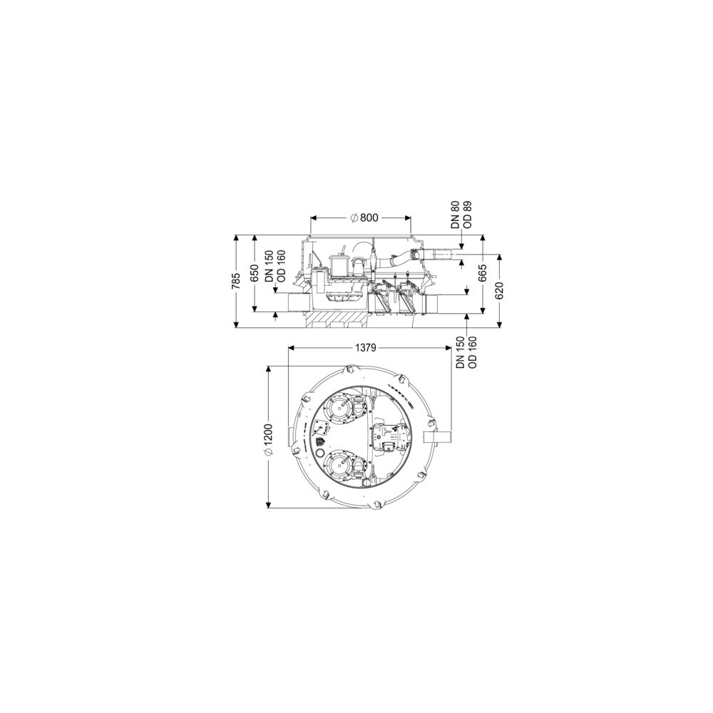 KESSEL Przepompownia przeciw. Ecolift XL, ścieków Ścieki zawierające fekalia i bez fekaliów, zabudowa w ziemi, urządzenie dwupompowe, z 2 SPF 1400 pomp zatapialnych, typ pracy S3 - 50%, czujnik alarmu z Sonda optyczna, sterownik Comfort Plus z redundancją