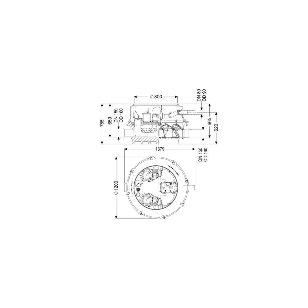 - Szerokość w świetle włazu (LW): 800 mm