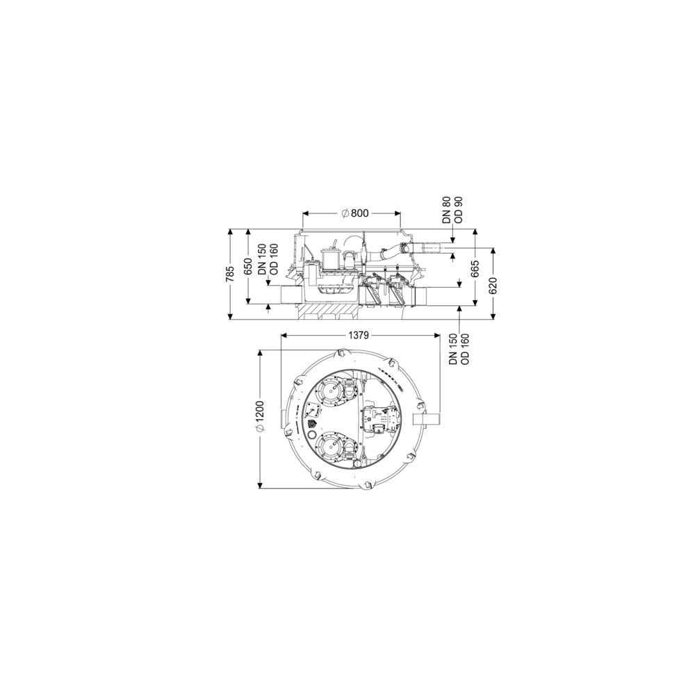 KESSEL Przepompownia przeciw. Ecolift XL, ścieków Ścieki zawierające fekalia i bez fekaliów, zabudowa w ziemi, urządzenie dwupompowe, z 2 SPF 3000 pomp zatapialnych, typ pracy S3 - 50%, czujnik alarmu z Sonda optyczna, sterownik Comfort Plus z redundancją