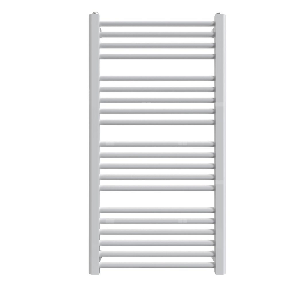 Grzejnik łazienkowy w kolorze białym. Typ: GRN - grzejnik pionowy łazienkowy. Materiał: stal niskowęglowa niestopowa. Konstrukcja: kolektor profil "D" 40 x 30, rury DN 20. Wysokość: 620, 740, 940, 1180, 1340, 1500, 1700, 1820 mm, szerokość: 400, 500, 600 mm. Ciśnienie robocze do 1,0 MPa. Temp. pracy do 95°C. Wyposażenie standardowe: korek 1/2", odpowietrznik 1/2", zawieszenie grzejnikowe typ Z 13. Wykończenie powierzchni: kolor biały. Przyłącza 1/2" GW.