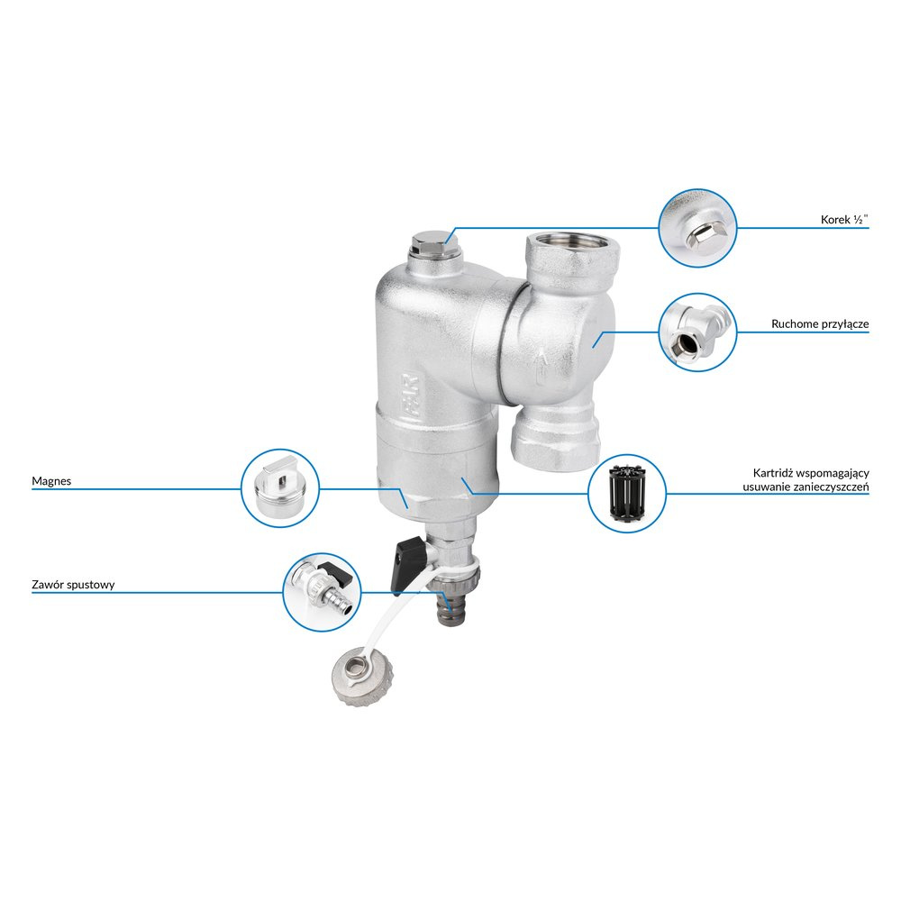 Stosowany w instalacjach grzewczych i chłodzących.Montowany na powrocie z instalacji przed źródłem.