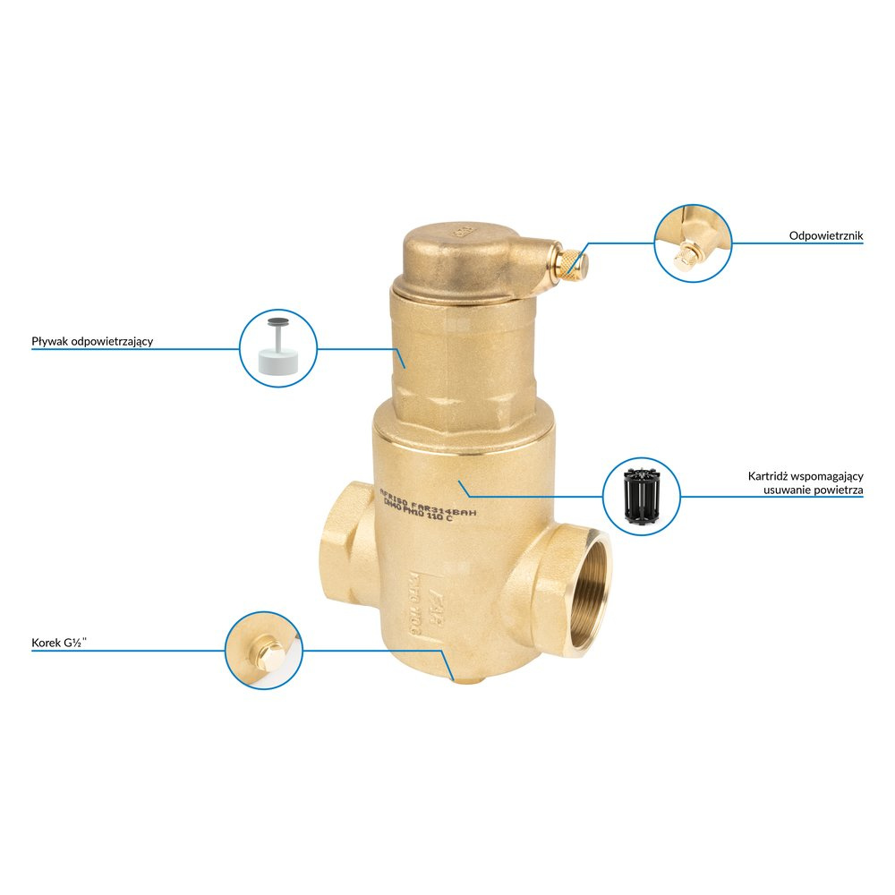 Separator mikropęcherzy AFRISO FAR 314, do C.O., do klimatyzacji, 10 bar / 110'C, 1 1/2'' (GW)Instalacje i źródła ciepła
