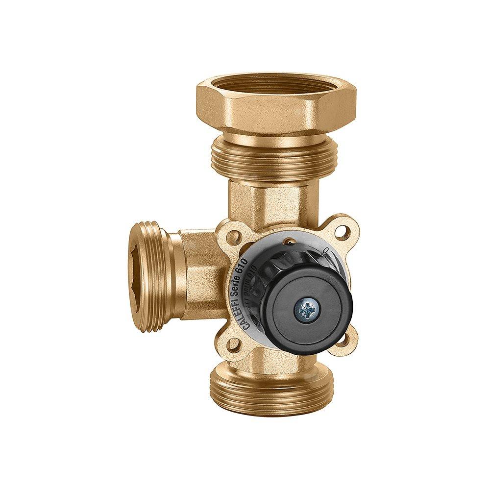 Trójdrożny zawór mieszający, gwintowany Dla grup z serii 167 Maksymalne ciśnienie pracy: 10 bar. Zakres temperatury medium: 5–110 °C. PN (Ciśnienie nominalne): PN 10. △p max.: 1 bar. Kv: 10,0 m³/h. Materiał: mosiądz.