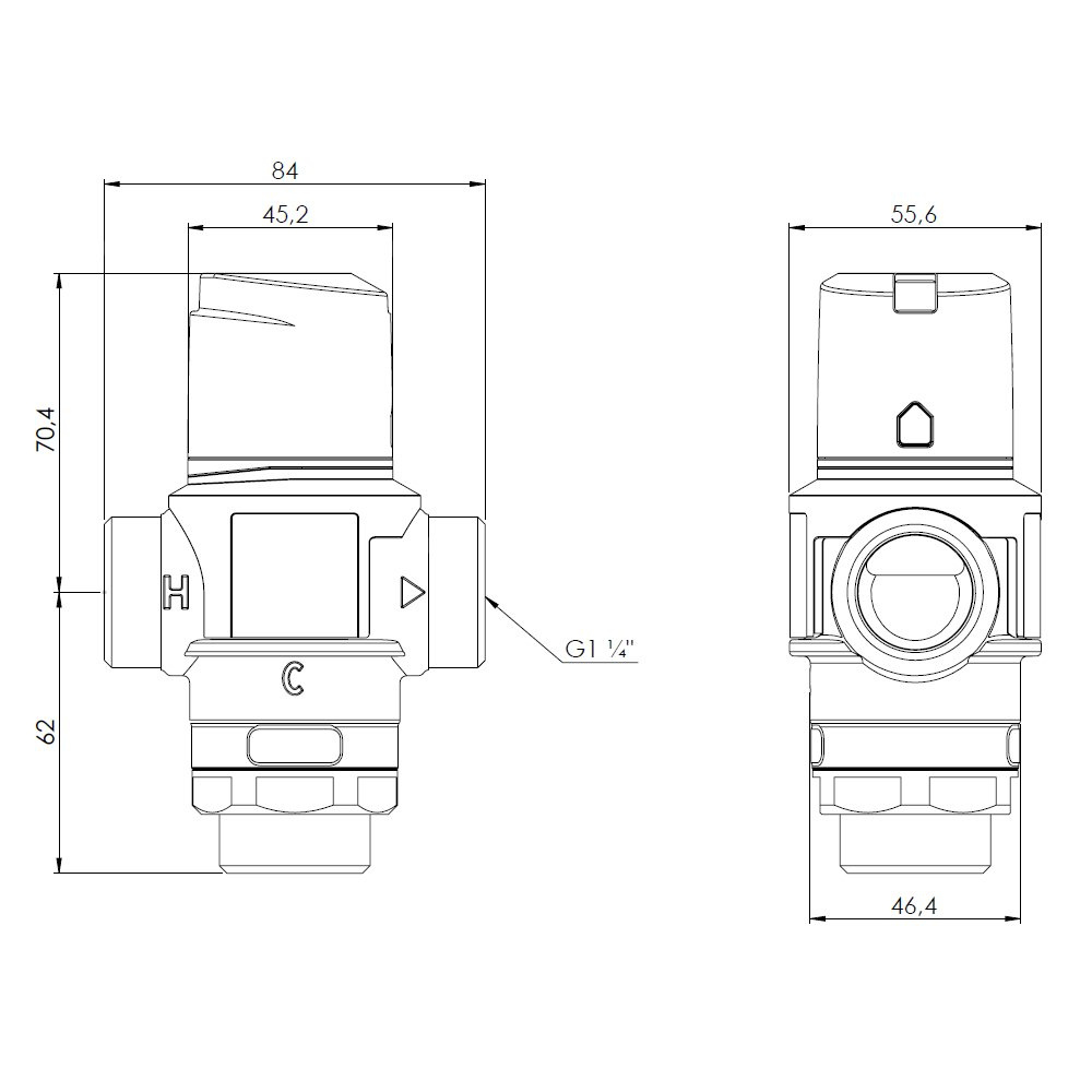 Zawór regulacyjny termostatyczny do wody ciepłej AFRISO ATM 883 mosiądz GZ 1 1/4'', DN 25, zakres temp. 35-60'C, Kvs 4.2 m3/h, maksymalna temperatura 110'C, maksymane ciśnienie 10 bar