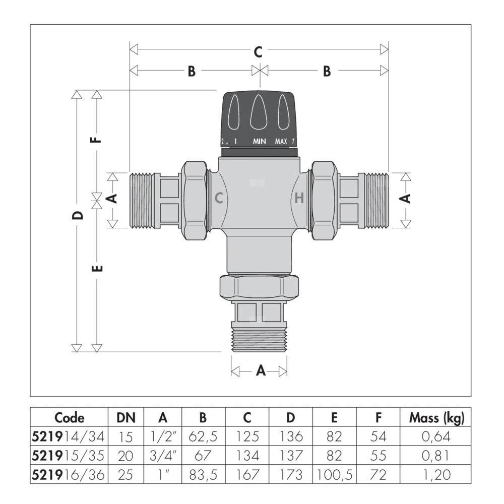 Regulowany termostatyczny zawór mieszający z zaworami zwrotnymi do regulacji temperatury w miejscu dystrybucji Z funkcją antyoparzeniową. Przyłącze: G 1/2" A (ISO 228-1) GZ, złączka. Maksymalne ciśnienie pracy: 10 bar. Zakres temperatury medium: 2–90 °C. Zakres regulacji temperatury: 35–65 °C. Wykończenie: chromowane. Kv: 1,5 m³/h. Materiał: stop mosiądzu odporny na odcynkowanie z niską zawartością ołowiu.