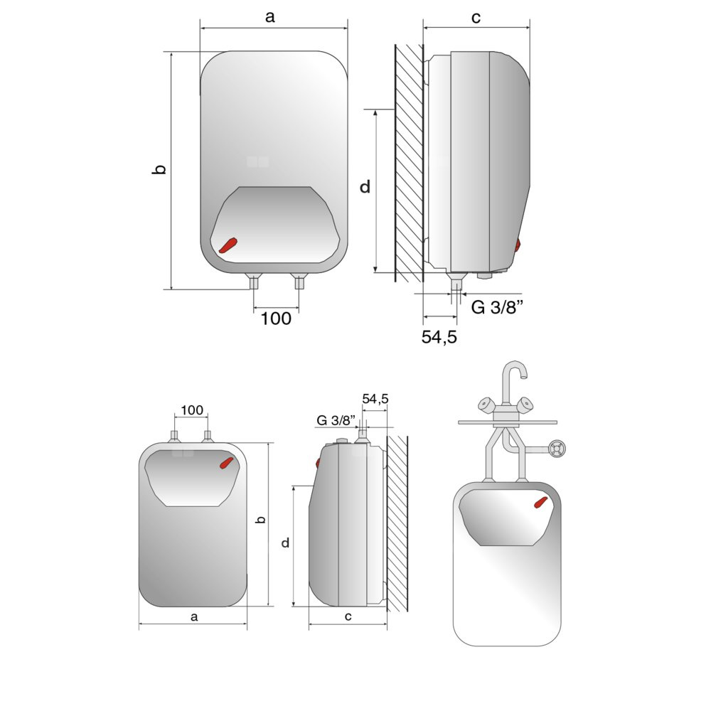 Elektryczny bezciśnieniowy podgrzewacz wody w komplecie z baterią