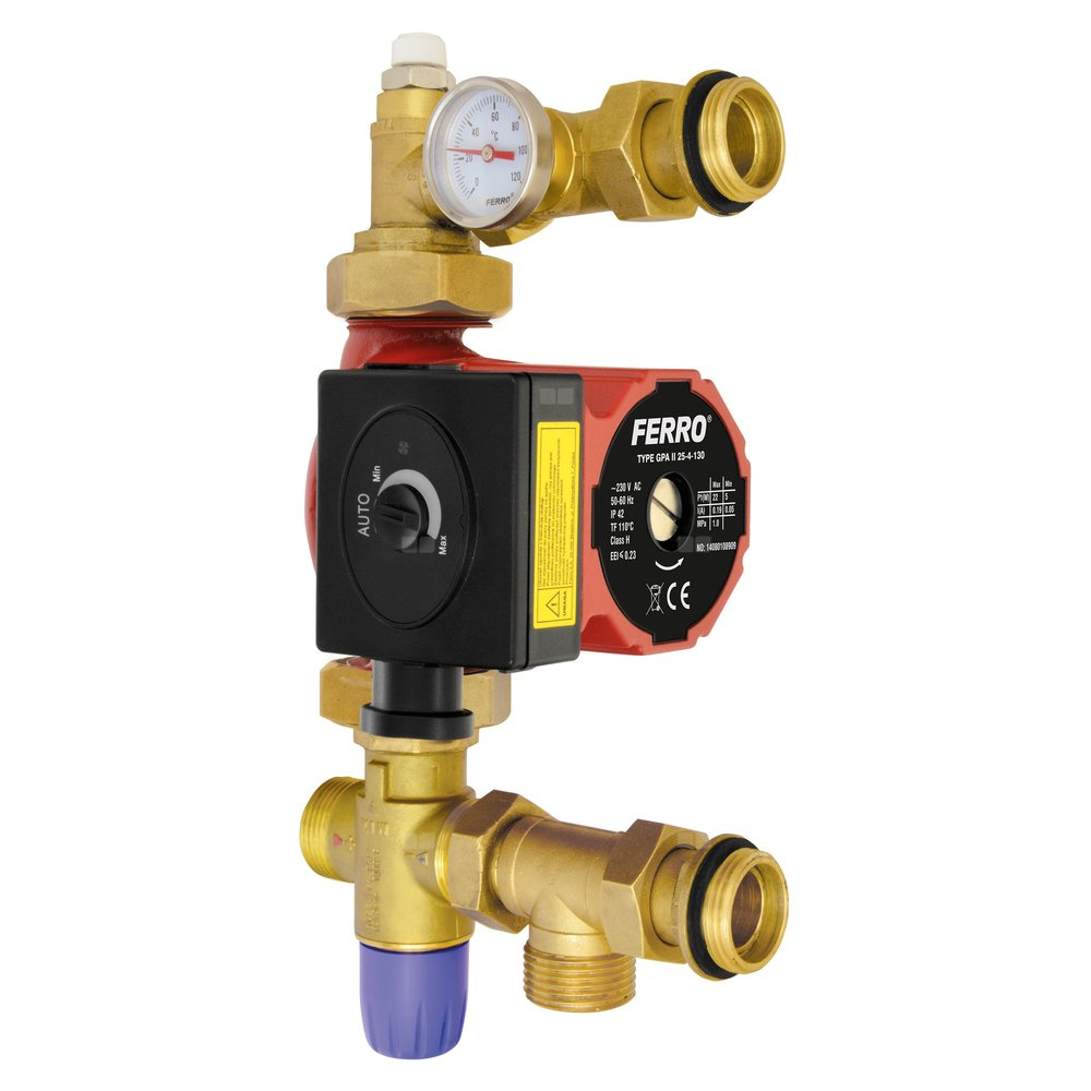 Grupa mieszająca do rozdzielacza 1" z zaworem termostatycznym 3-drogowym i pompą elektroniczną 25-4 130