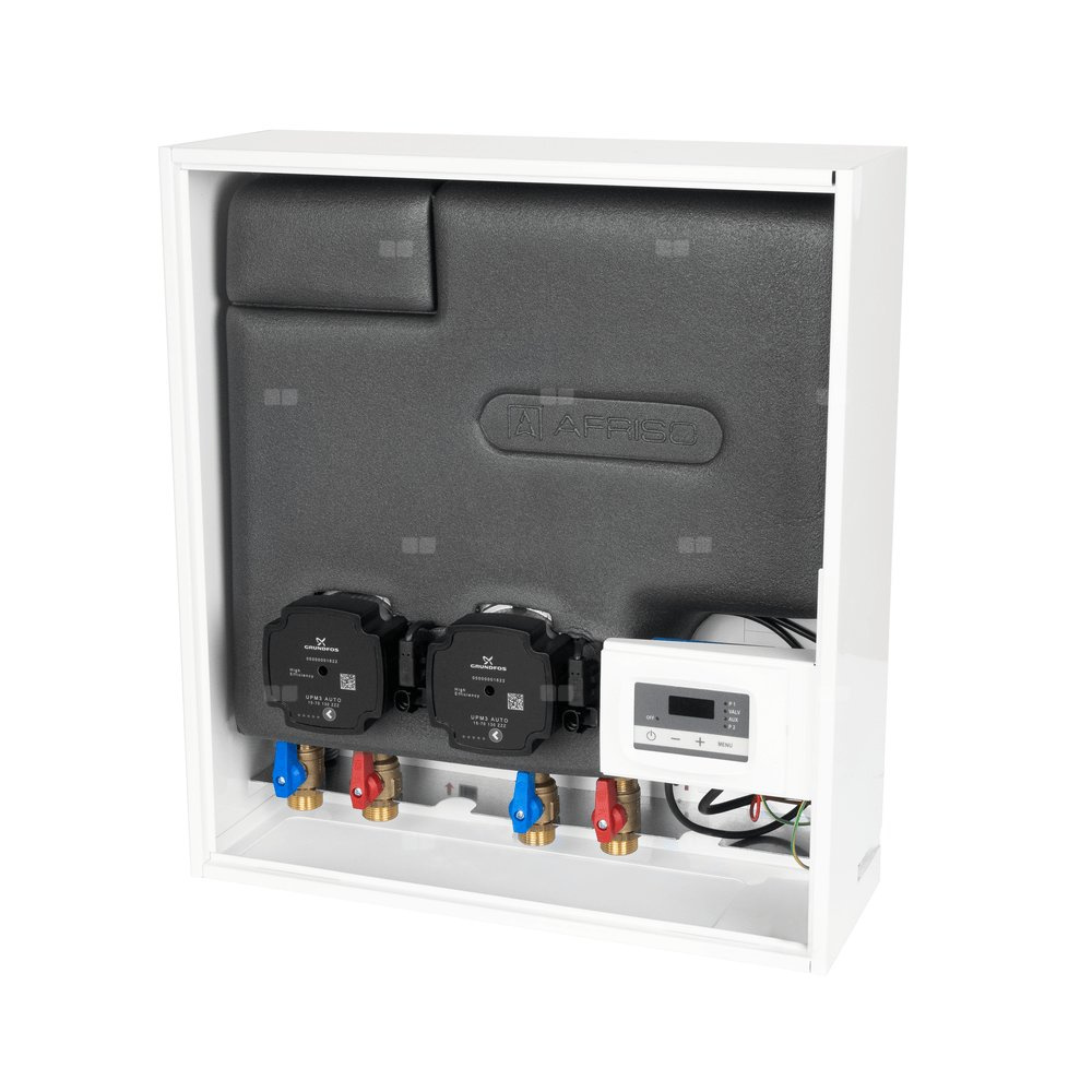 Grupa pompowa AFRISO PrimoBox AHB 622 GZ x GW 3/4'' x 3/4'', z zaworem termostatycznym, z izolacją, z pompą obiegową 2x Grunfos UPM3 Auto