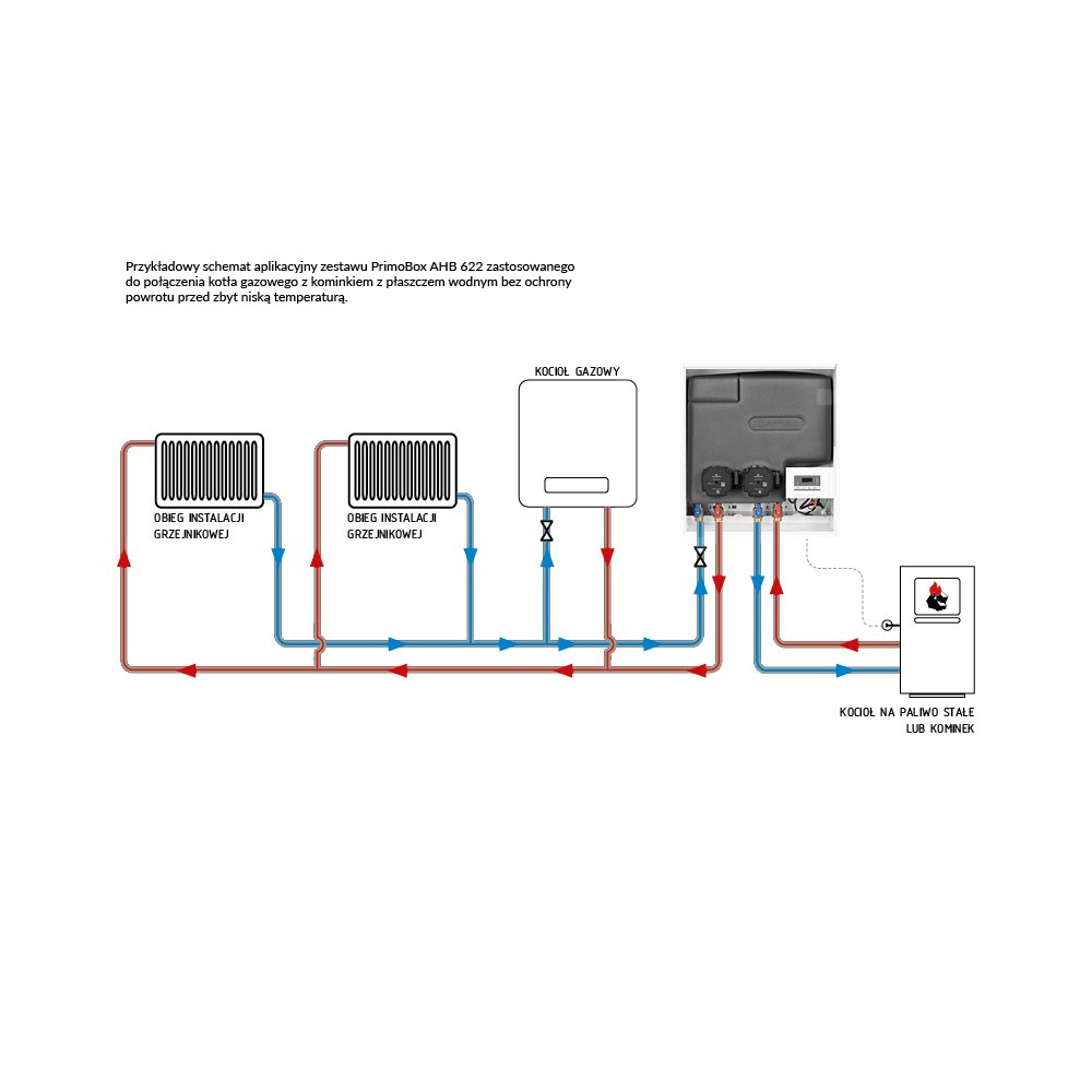 Posiada wbudowany zawór temperaturowy *ATV* 213 do ochrony źródła ciepła na paliwo stałe przed zbyt niską temperaturą powrotu.