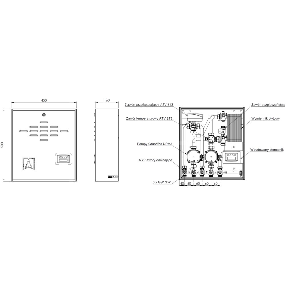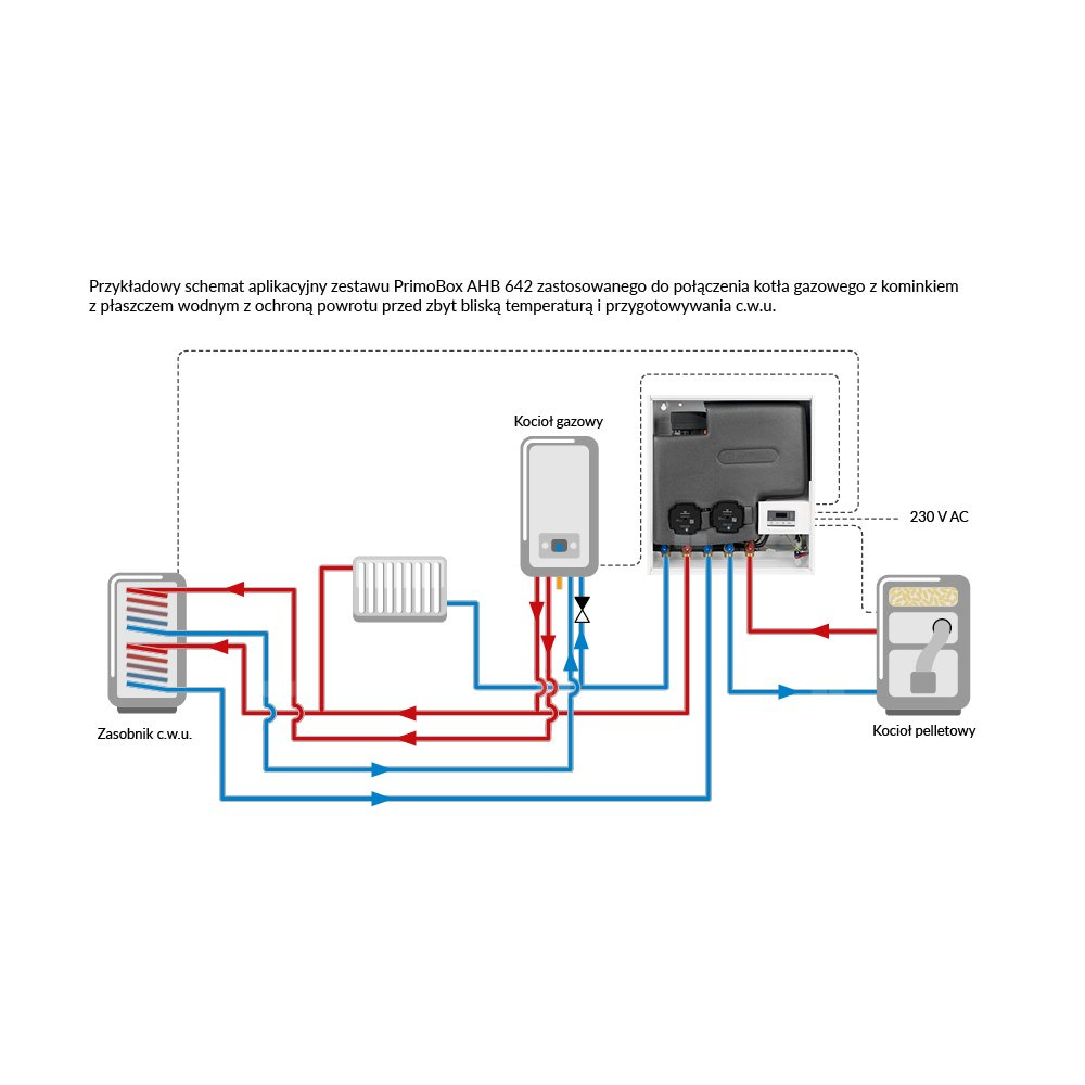 Stosowany do połączenia dwóch różnych źródeł ciepła poprzez oddzielanie ich obiegów za pomocą wymiennika płytowego.Montowany na lub w ścianie w pobliżu źródła ciepła.