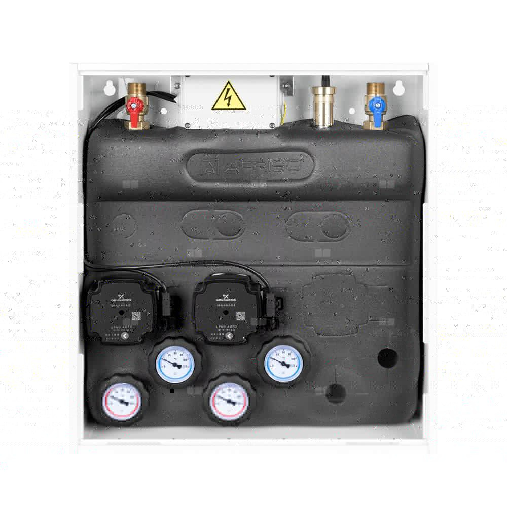 - Zastępuje skomplikowane instalacje ze sprzęgłami, rozdzielaczami – 80% kotłowni w jednej szafce.