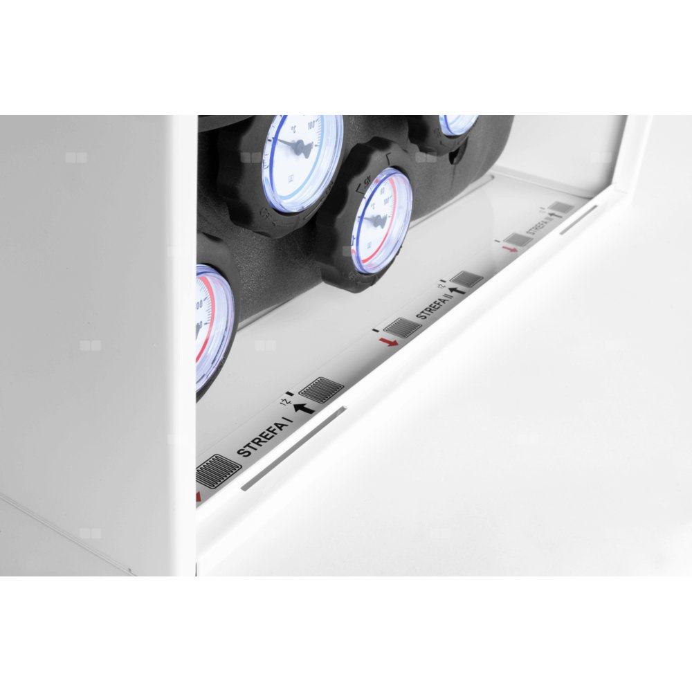 Tworzy 2 obiegi grzewcze w oparciu o wbudowany rozdzielacz.