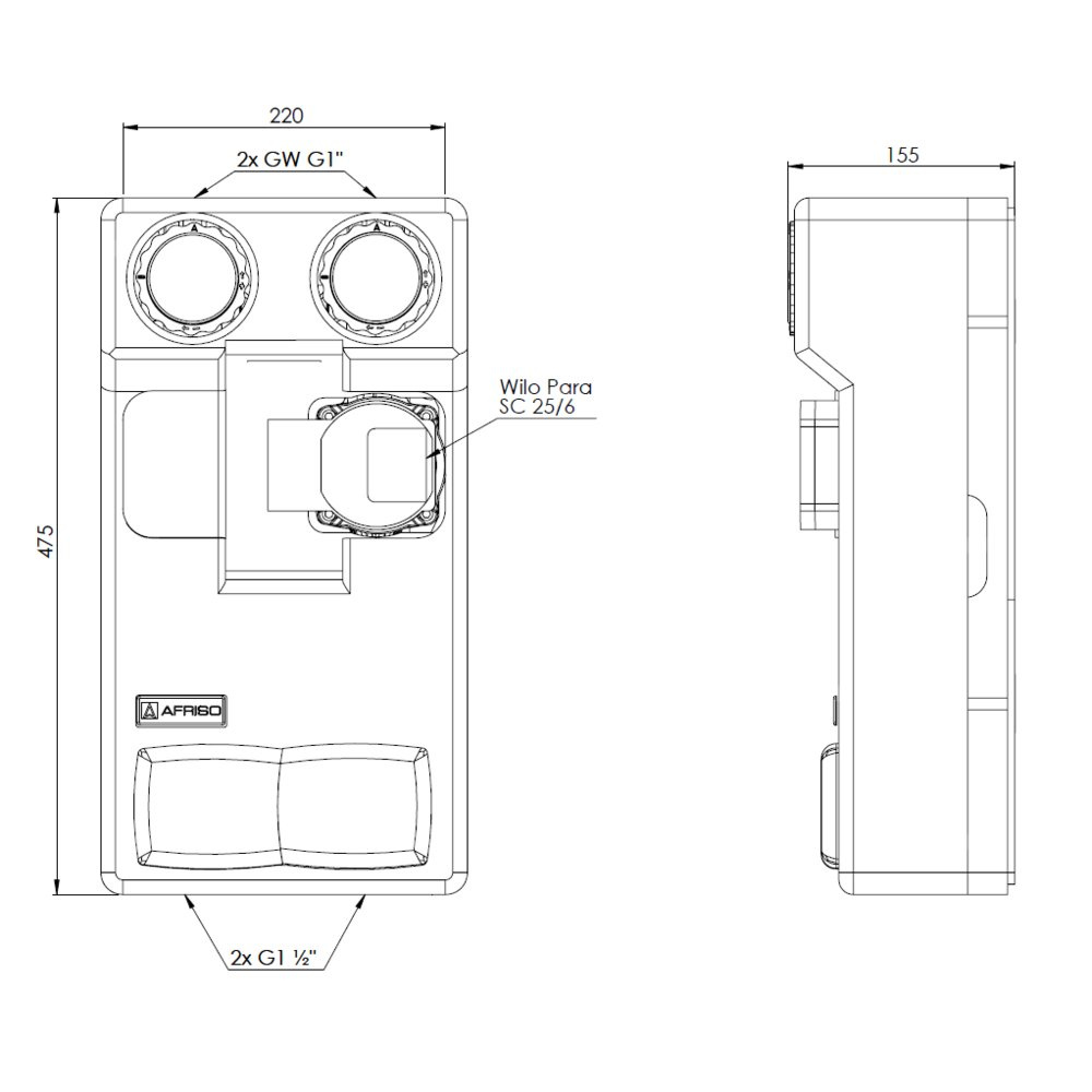 Grupa pompowa AFRISO PrimoTherm 180-1 DN 25 WP GZ x GW 1 1/2'' x 1'', z izolacją, z pompą obiegową Wilo Para SC 25/6