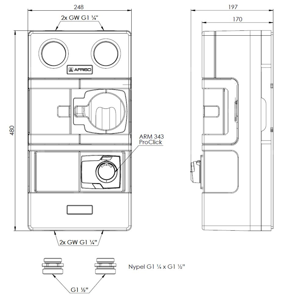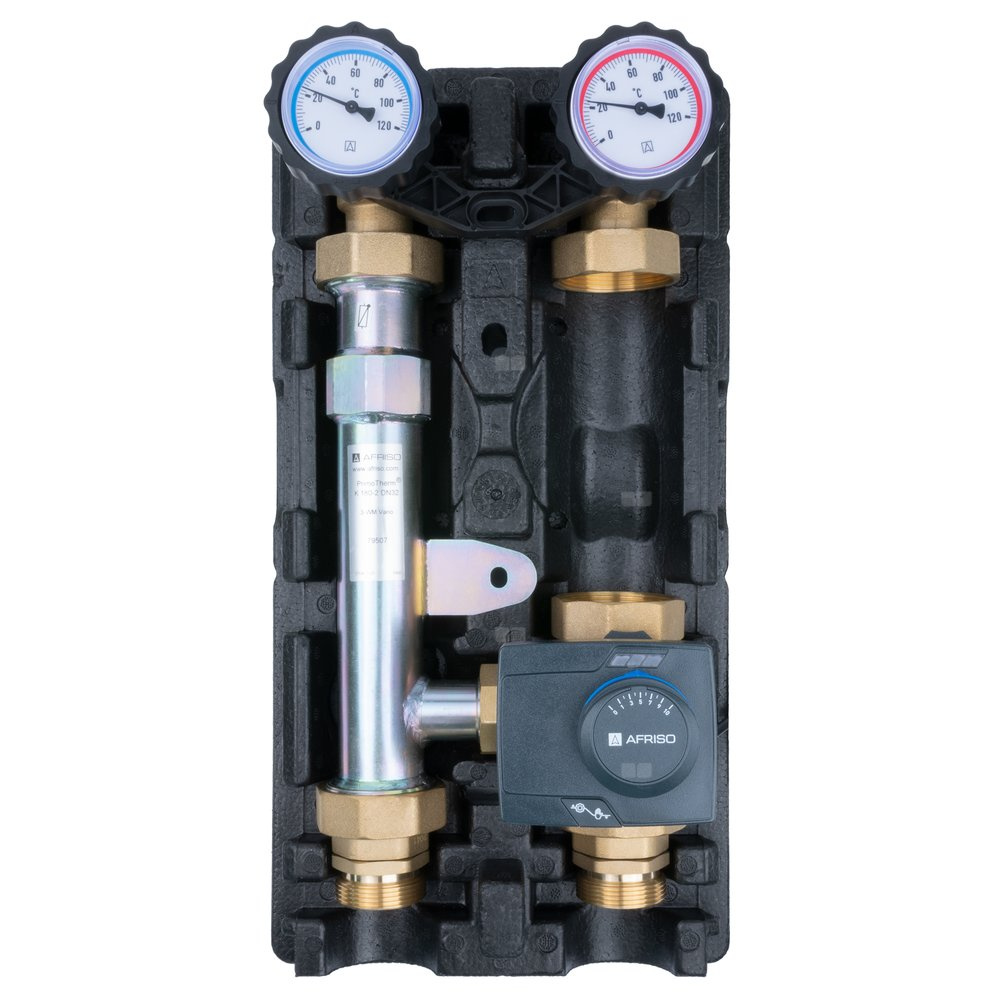 Grupa pompowa AFRISO PrimoTherm K 180-2 DN 32 GW 1 1/4'' x 1 1/4'', z zaworem mieszającym, z izolacją, z siłownikiem arm 343