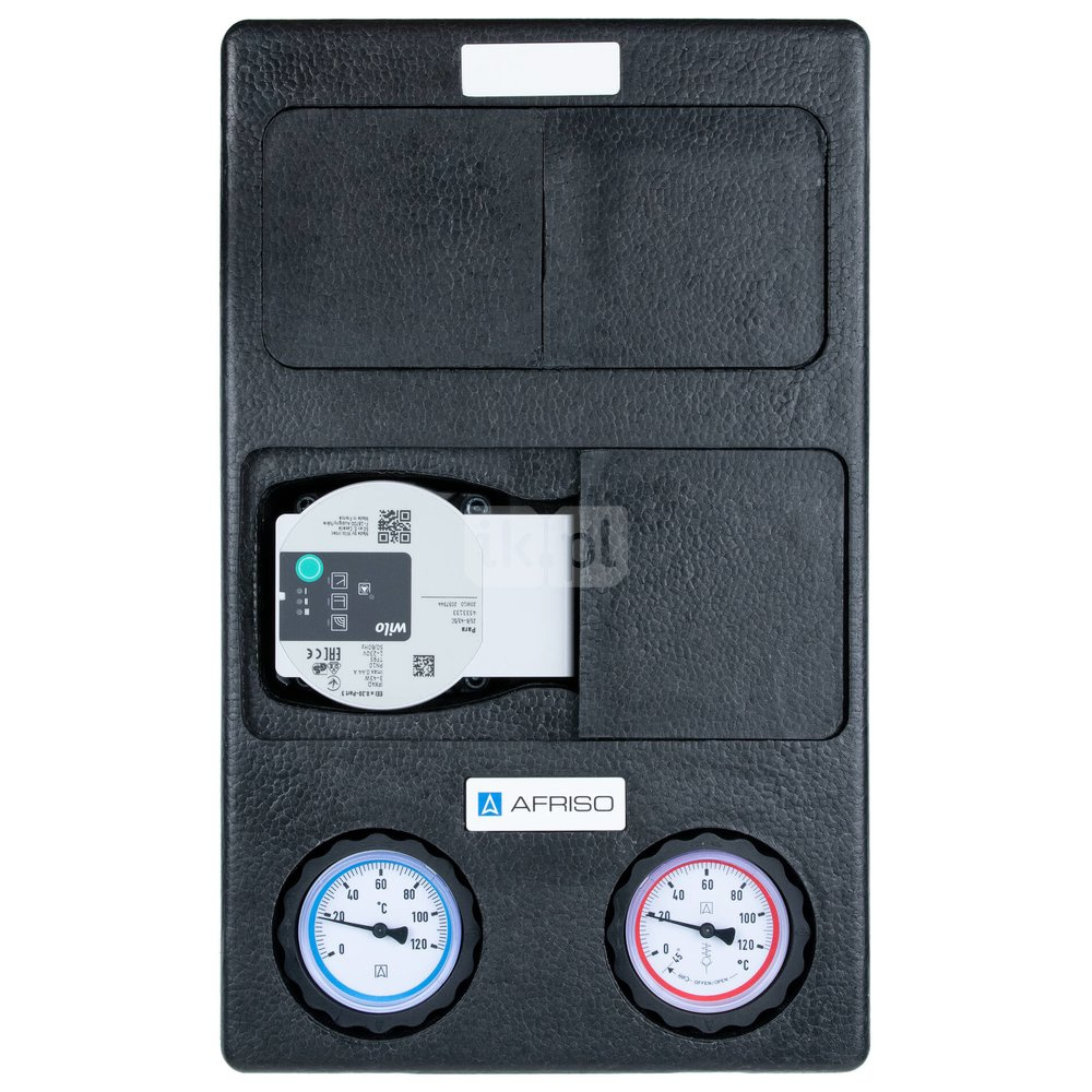 Grupa pompowa AFRISO PrimoTherm K 180-3 DN 25 GW 1'' x 1'', z zaworem mieszającym, z zaworem termostatycznym, z izolacją, z pompą obiegową Wilo Para SC 25/6