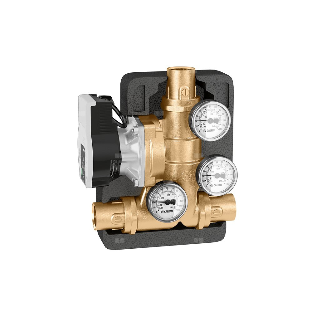 Grupa pompowa do cyrkulacji czynnika grzewczego z zaworem termostatycznym zabezpieczającym kotły na paliwo stałe przed zbyt niską temperaturą powrotu Z izolacją. Temperatura pełnego zamknięcia obejścia: Tmin = Tset +10°C = Tr. Pompa o wysokiej wydajności: UPM3S Auto 25-60, UPML 25-105. Przyłącze: G 1" (ISO 228-1) GW, złączka. Maksymalne ciśnienie pracy: 10 bar. Zakres temperatury medium: 5–100 °C. Nastawa: 55 °C. Maksymalne stężenie glikolu: 50 %. Medium: woda, Roztwory glikolu. Maksymalne zalecane natężenie przepływu: 2 m³/h. DN: DN 25 (korpus). Rodzaj pompy: Para 15-7. Materiał: mosiądz.