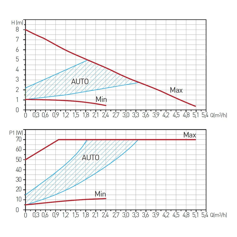 Korpus pompy wykonany jest z żeliwa, obudowa silnika odlana z aluminium, a wirnik uformowany z tworzywa. Wysokiej jakości silnik sterowany elektronicznie nie wymaga ochrony przed przeciążeniem. Pompa posiada regulację potencjometryczną, za pomocą której można w płynny sposób sterować jej wydajnością. Wyposażnona jest ona także w funkcję automatycznej adaptacji do układu, w którym jest zamontowana, co oznacza, że dostosowije ona swoją wydajność tak aby zoptymalizować prac