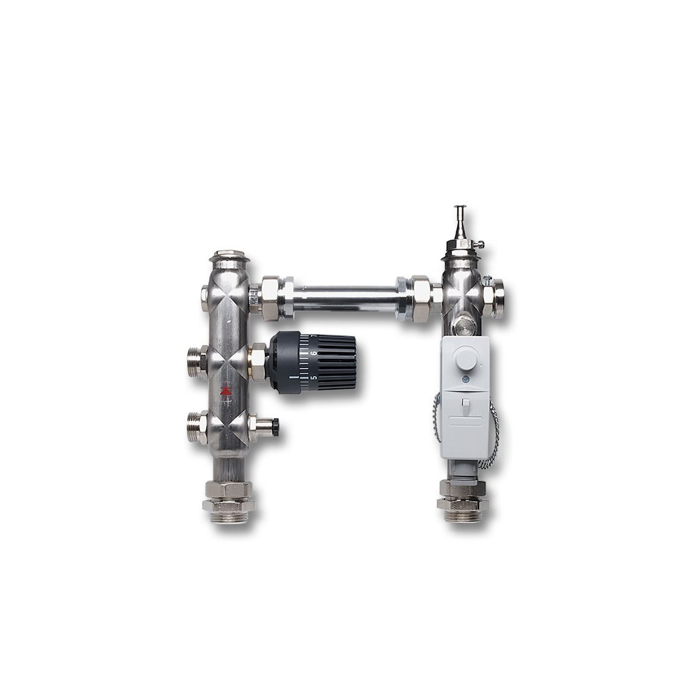 Zestaw pompowo-mieszający. Kontrola wartości zadanej w zakresie 20-50 st.C. Bez pompy , zawór z termostatyczny, odpowietrznik, zawór zwrotny zintegrowany