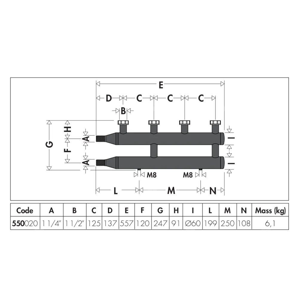 Przyłącza wyjściowe obiegów wtórnych: 1 1/2" GW z nakrętką.