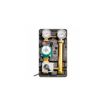 MMH 32 - grupa pompowa z zaworem mieszającym (2 zawory kulowe z zaworem zwrotnym, 2 termometry, zawór mieszający z siłownikiem 140 s, czujnik temperatury)
