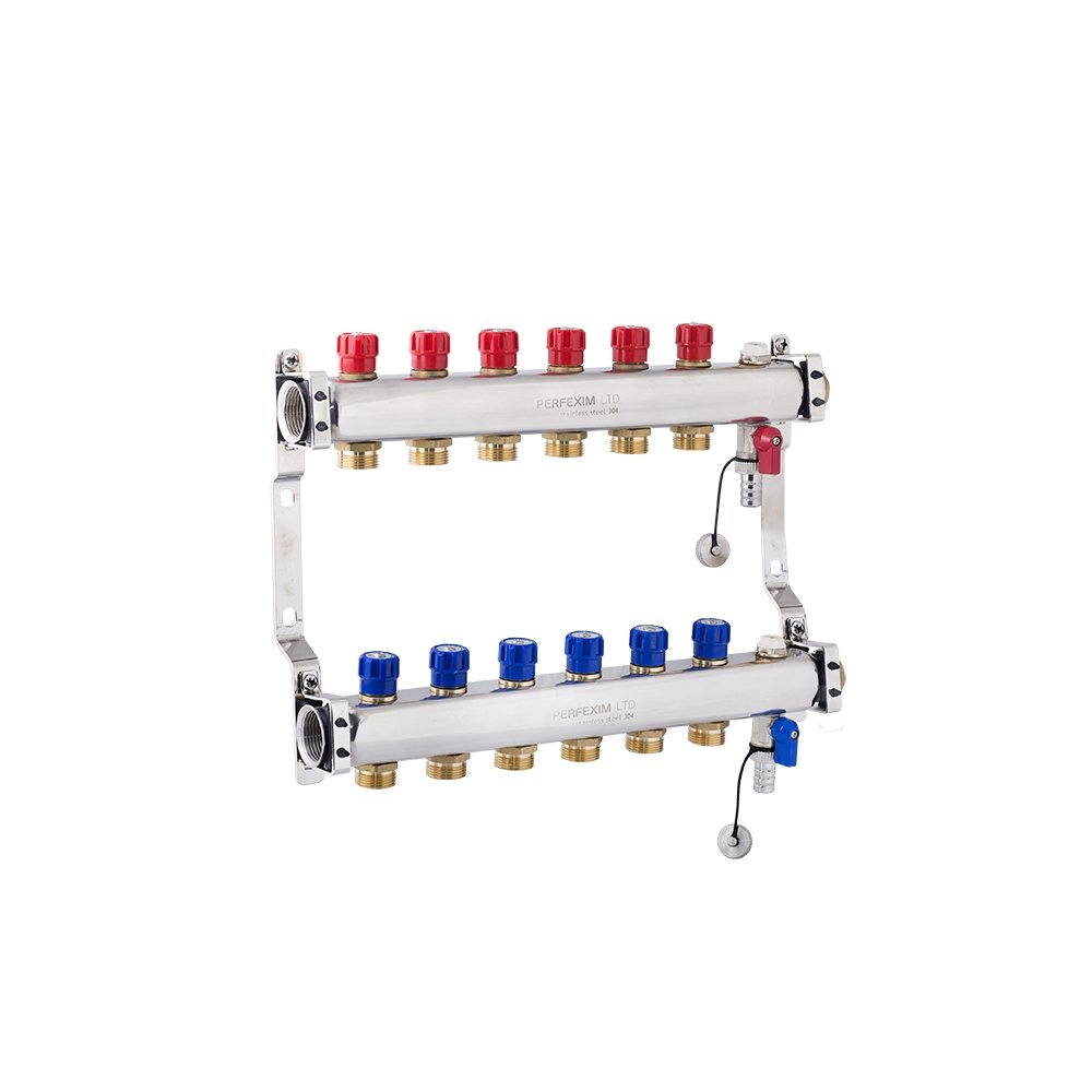 PHA-129A/1 9-obwodowy PN10 Rozdzielacz ze stali nierdzewnej z wkładkami zaworowymi regulacyjno-odcinającymi z odpowietrznikiem ręcznym