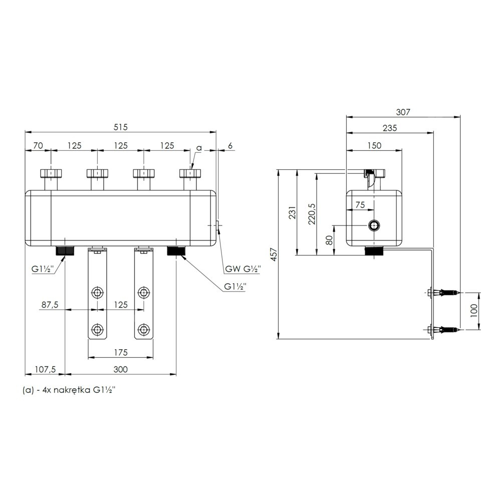 Rozdzielacz do instalacji c.o. AFRISO KSV 125-2 HW GZ 1 1/2'', 2-obieg. Nakrętka 1 1/2'', max. 70 kW