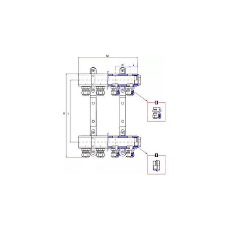 Rozdzielacze centralnego ogrzewania przeznaczone są do rozdzielenia medium grzewczego na poszczególne emitery (grzejniki). W skład rozdzielacza 50C wchodzą: belka zasilająca belka powrotna 2 uchwyty montażowe I - 2 korki 1” z o ringiem B - złączka skręcana G1/2" x Fi16