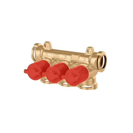 Rozdzielacz z indywidualnymi zaworami odcinającym (czerwone pokrętła) przyłącza wylot: 3 wyjścia , podłączenie zaciskowe.