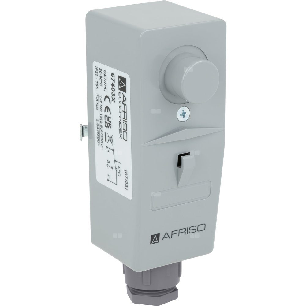 Przeznaczony do sterowania urządzeniami zewnętrznymi, na zasadzie włącz/wyłącz.Włącza lub wyłącza sterowane urządzenie w zależności od temperatury zmierzonej na powierzchni kontaktu i nastawionej na pokrętle.