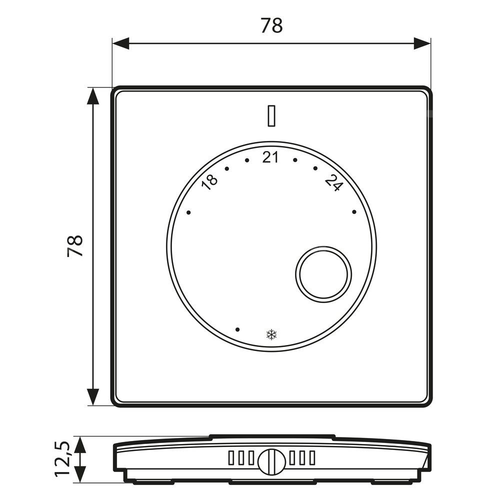 Nastawa temperatury przy pomocy pokrętła.