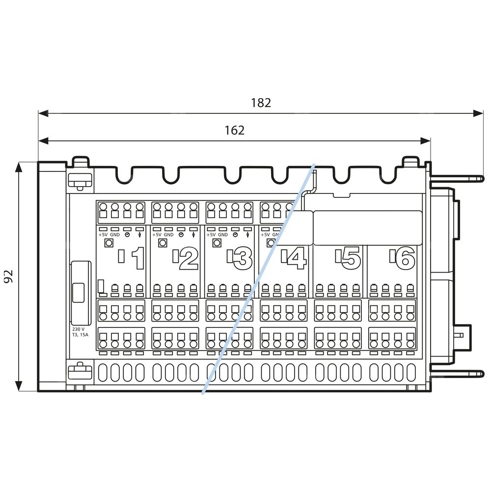 Montowany na szynie DIN do modułu podstawowego BM w pobliżu rozdzielacza.