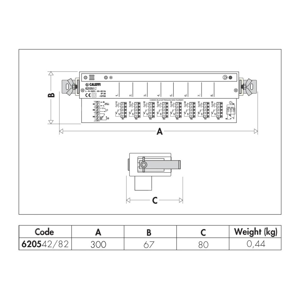 Mostek Wejście do zegara. Polecenie wyjściowe dla pompy. Wejście LATO – ZIMA. Zasilanie elektryczne: 230 V (AC). Pobór mocy: 5,5 VA. Stopień ochrony: IP 30 (z gumowym dławikiem kablowym). Styk przy przełączaniu: 10 A.