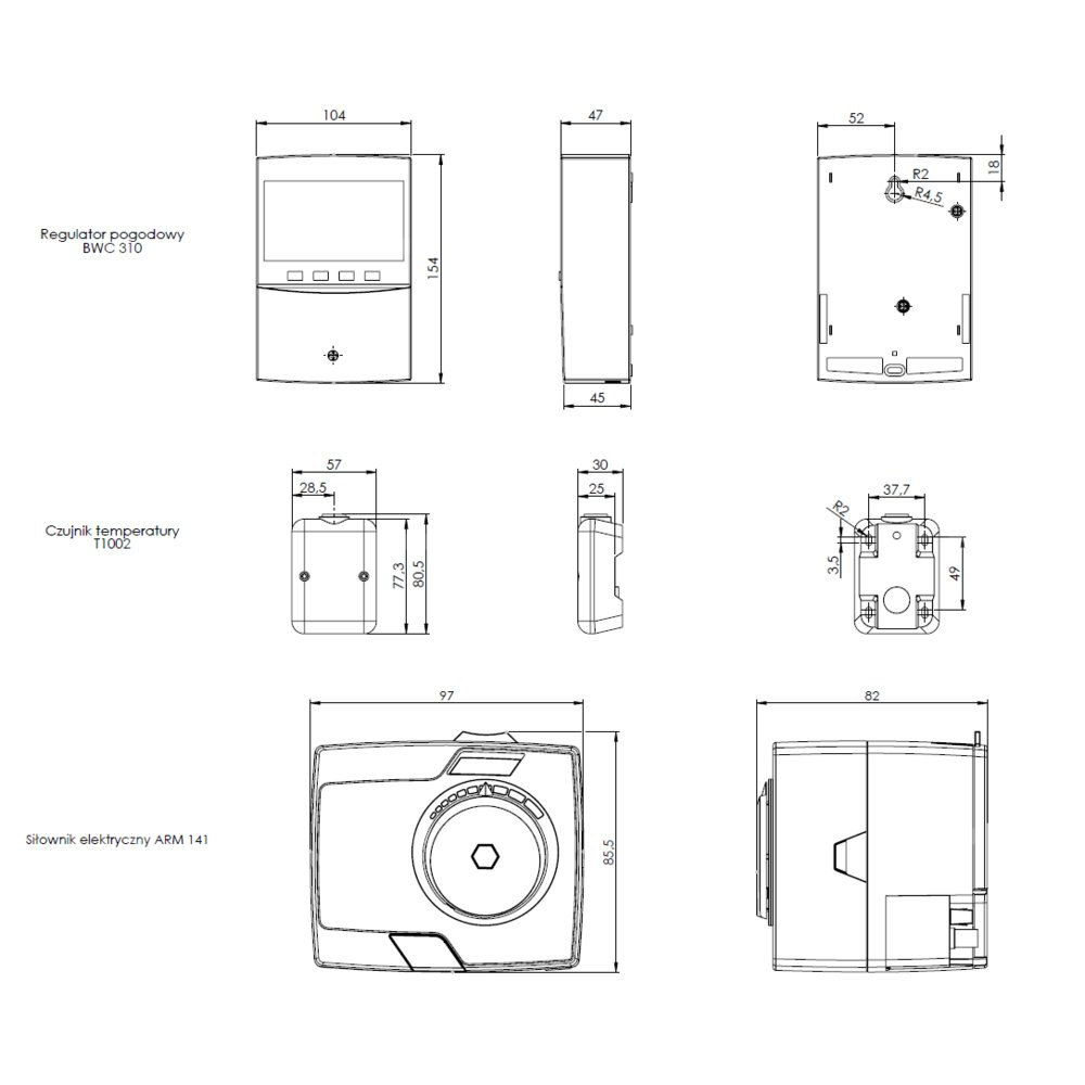 Zestaw: regulator pogodowy z siłownikiem