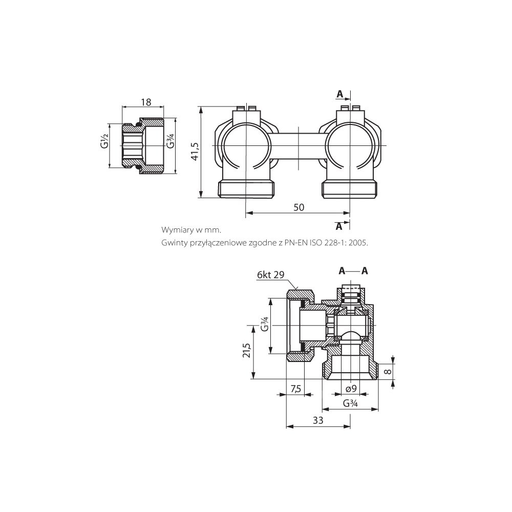 Do grzejników z przyłączami G½. Komplet zawiera: zespół odcinający prosty (art. 7005) oraz dwa nyple (art. 8021). Do instalacji montowane za pomocą zacisków art. PHA-090, art. NUT02, art. 215