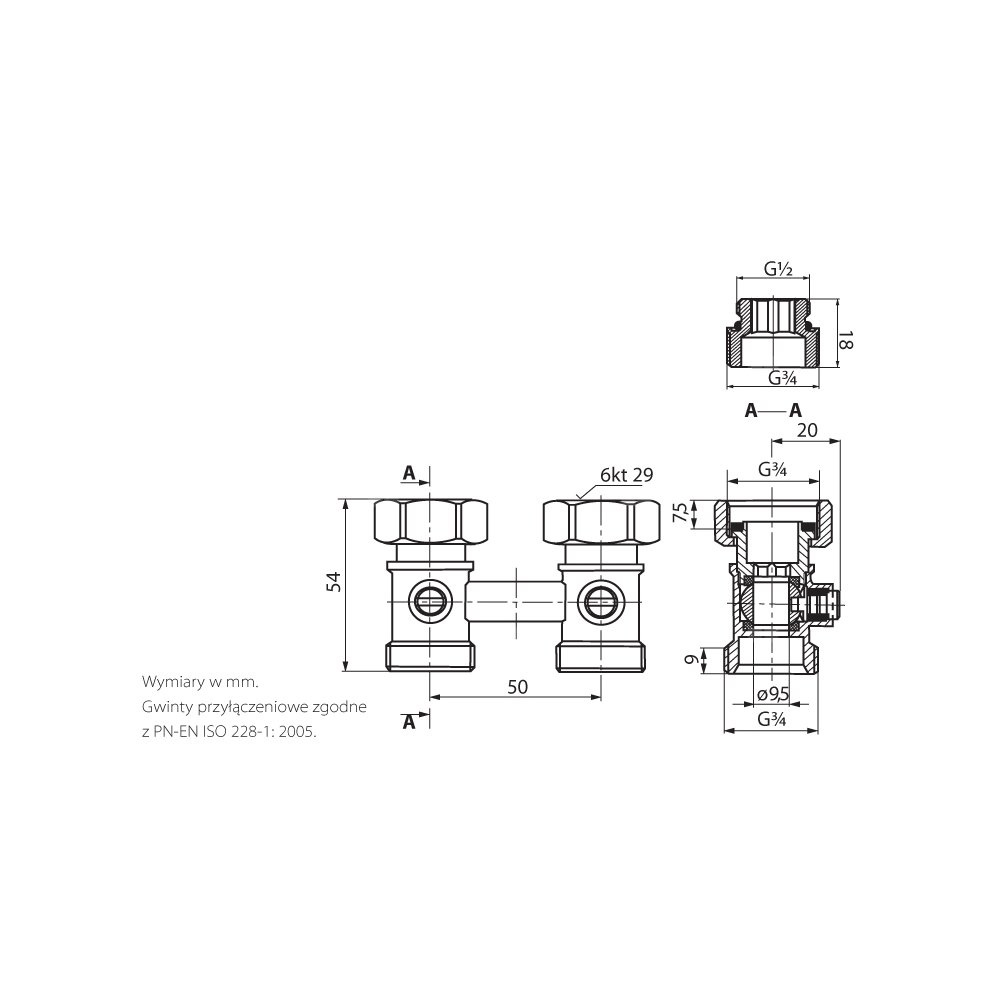 Do grzejników z przyłączami G½. Komplet zawiera: zespół odcinający prosty (art. 7006) oraz dwa nyple (art. 8021). Do instalacji montowane za pomocą zacisków art. PHA-090, art. NUT02, art. 215E