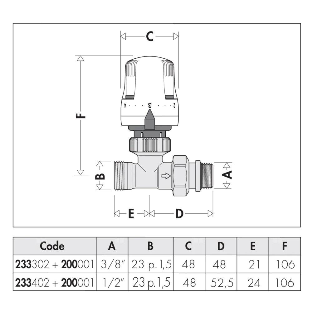 Prosty dynamiczny grzejnikowy zawór termostatyczny przystosowany do montażu głowic termostatycznych elektronicznych i siłowników termoelektrycznych. podłącznie rury: 23 p. 1,5, wlot, podłączenie proste, Podłączenie do złączek Caleffi. podłączenie grzejnika: G 1/2" A (ISO 228-1) GZ, wylot, podłączenie proste. Maksymalne ciśnienie pracy: 10 bar. Zakres temperatury medium: 5–95 °C. Wykończenie: chromowane. Zakres regulacji natężenia przepływu: 20–120 l/h. Materiał: mosiądz.