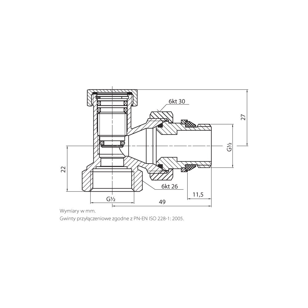 PHA-033A G1/2 WZ PN10 DN15 Zawór grzejnikowy odcinający K gwint samouszczelniający CuZn-C PN-M-75002