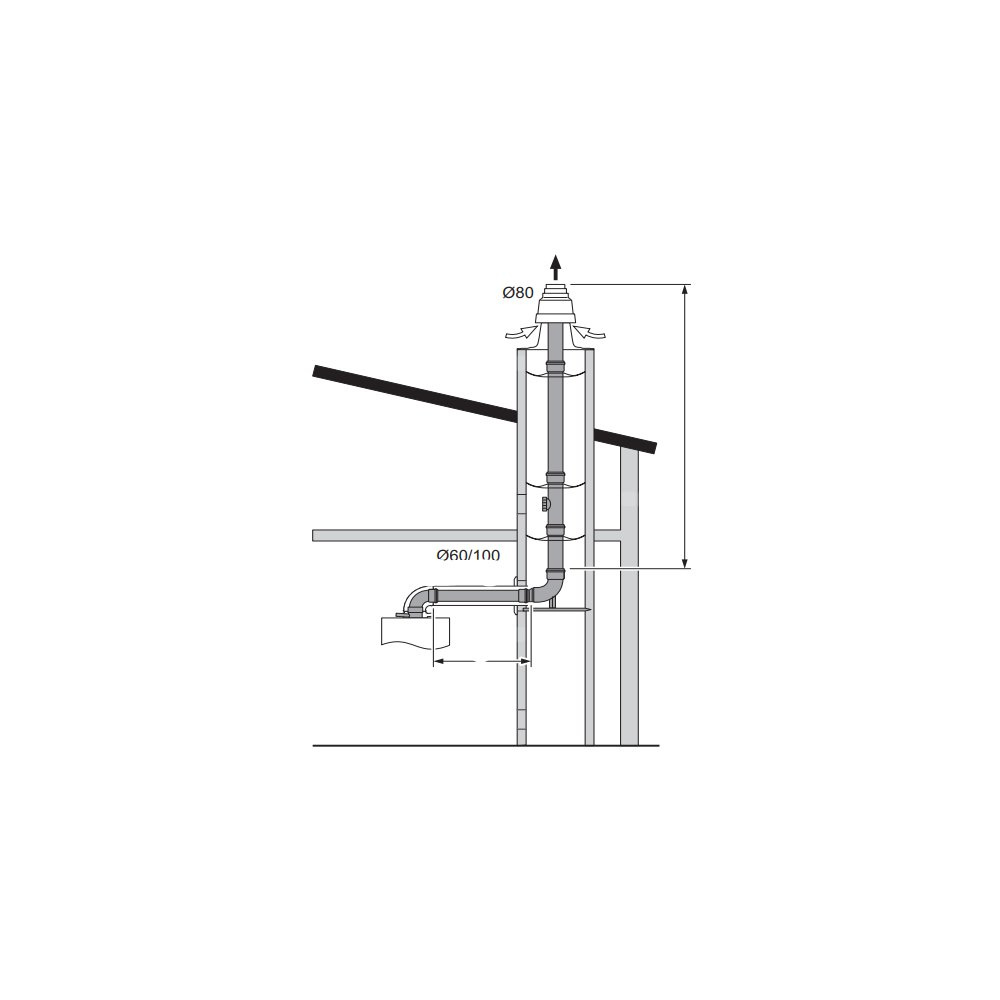 Pakiet kominowy do szachtu typu C93 średnica 60/100 + 80 mm; Zestaw przyłączeniowy 60/100 rura przedłużająca 2mx2szt; rura przedłużająca 1mx2 szt; nasada szachtu PP; kpl rozpórek t szt